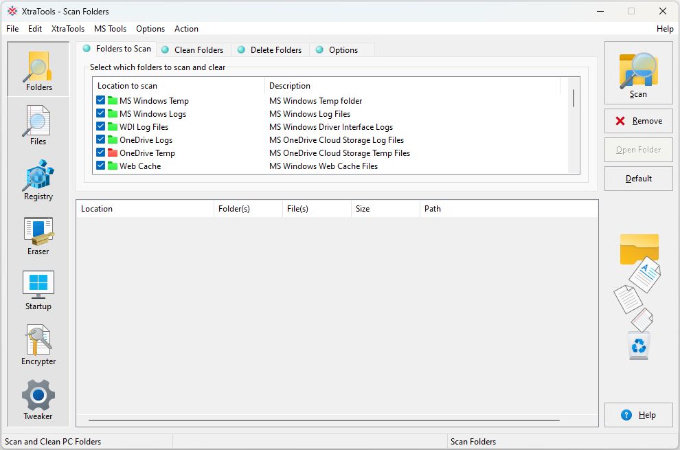 XtraTools includes the following tools: Scan Folders, Scan Files, Scan Registry, Startup Manager, System Tweaker, and System Monitor. These tools provide a robust framework for maintaining and enhancing your system’s performance.